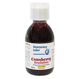 Cranberry Resolution, poliestratto fluido*, è un un Integratore alimentare a base di Cranberry* (Oxycoccus palustri Pers./Vaccinium macrocarpum Aiton) e Propoli*. Il Cranberry si mostra efficace per il benessere delle funzionalità dell'apparato urinario. Il succo naturale estratto dà la colorazione al prodotto ed è privo di ogni altra aggiunta di colorante artificiale.