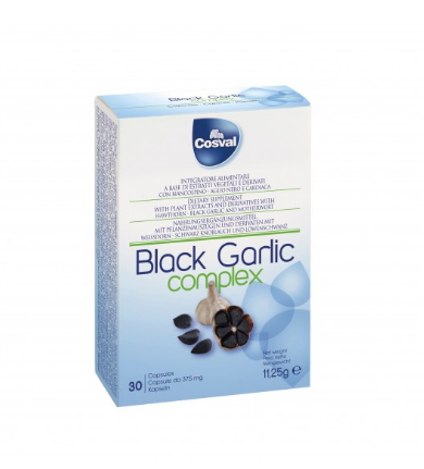 Black Garlic complex è un integratore alimentare a base di estratti vegetali, e derivati, con Aglio nero*(Allium sativum L.), Biancospino* e Cardiaca* che contribuisce alla regolare funzionalità dell'apparato cardiovascolare e sulla regolarità della pressione arteriosa