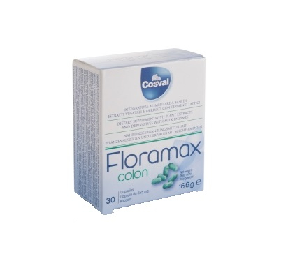 Floramax Colon è un integratore alimentare a base di piante con Cicoria, Acacia, Melissa e Boswelia, e derivati, e con fermenti lattici (L. reuteri, B. longum spp. longum, B. bifidum) che può favorire la regolare motilità gastrointestinale, contrastare il meteorismo con la conseguente tensione addominale, dovuta ai gas, e ristabilire il riequilibrio della flora intestinale.