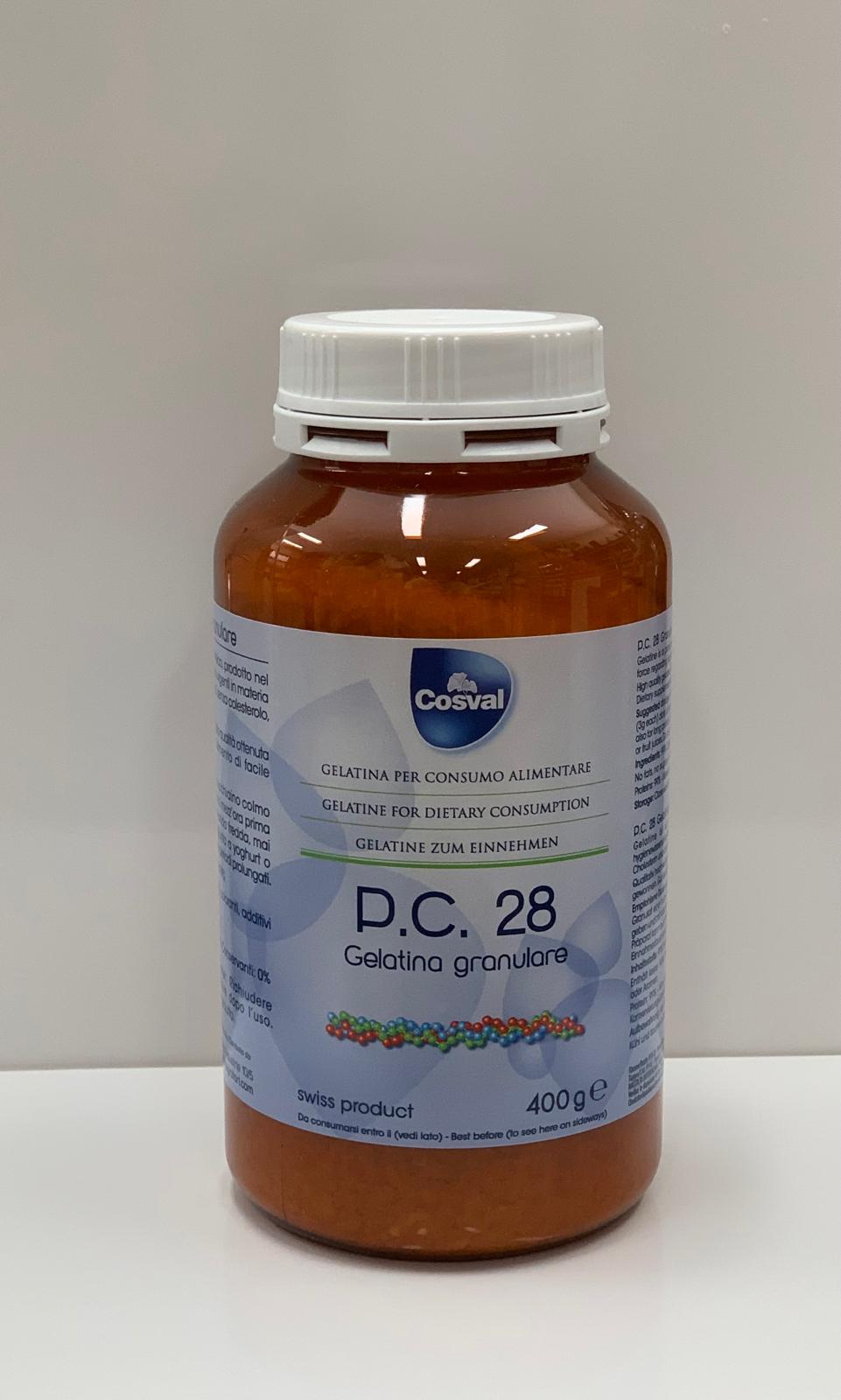 Benessere Osteoarticolare - Food SupplementsP.C. 28 Gelatina Granulare è un integratore alimentare di origine organica al 100%(collagene) che contribuisce alla rigenerazione del tessuto connettivo delle cartilagini in caso di infiammazioni e patologie alle articolazioni con il miglioramento della loro motilità e il costrasto ai dolori. Alimento di facile digeribilità e di ritenzione nulla per mancanza dell’amminoacido triptofano, P.C.28 è una gelatina granulare di alta qualità è ottenuta da collagene selezionato ed è un estratto proteico, prodotto nel rigoroso rispetto delle vigenti disposizioni in materia d’igiene alimentare.