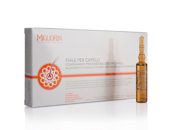 Migliorin Fiale coadiuvante caduta è un integratore alimentare con Miglio dorato*. Le Fiale pH 5,5 Migliorin agiscono dall'esterno ed il loro impiego è indicato sia nella fase della prevenzione, come coadiuvante, sia nel trattamento della caduta dei capelli. Aiutano ad ossigenare e riattivare i bulbi, sviluppando e rinforzando la capigliatura. L’estratto oleoso di Miglio, di facile assorbimento, garantisce una significativa presenza di Silicio, un minerale altamente prezioso per l’elasticità, il tono e la morbidezza dei capelli. Un cuoio capelluto sano significa bulbi piliferi efficienti, in grado di produrre capelli belli e forti.