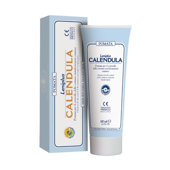 La Pomata LeniPlus Calendula è una pomata a base di Estratti di Calendula*, Camomilla*, Ippocastano* e Tiglio*, con Vitamina E e con altre sostanze vegetali come il Burro di Karitè, gli Olii di Rosa mosqueta, di Mandorle dolci, il Gel di Aloe, appositamente selezionate per fornire alla pelle protezione, azione idratante ed emolliente utile per lenire fastidiosi sintomi cutanei, per dare pronto sollievo e benessere. È un valido aiuto per il benessere cutaneo, limita gli effetti di incidenti che possono alterare lo stato di salute della cute da prolungata esposizione solare, arrossamenti ed irritazioni da sudore sotto le ascelle, l' inguine, le cosce e in ogni caso pelle sia affetta da lesioni superficiali o disturbi causati da fattori diversi.