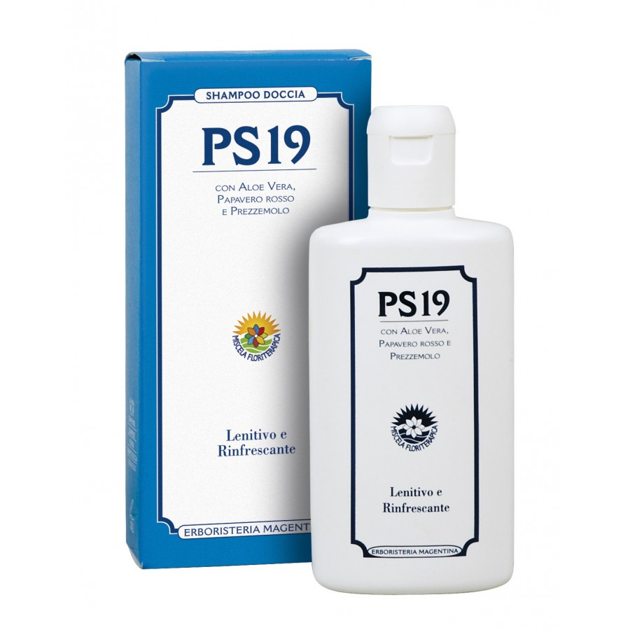 PS19 Shampoo Doccia è un efficace detergente per pelli fragili e sofferenti, colpite da psoriasi, eritema, dermatiti e intolleranza all'acqua a base di Estratti di Biancospino, di Papavero, di Centella, di Prezzemolo, e Olii essenziali di Bergamotto (Citrus Aurantium Bergamia), di Limone (Citrus Medica Limonum), di Boswellia (Boswellia Carterii), Tea Tree (Melaleuca Alternifolia) con Pantenolo e Succo di Aloe (Aloe Bardensis) Questa ricca composizione di principi attivi antiinfiammatori e riepitelizzanti con l'effetto morbido e vellutante dei suoi componenti, avvolge la pelle con dolcezza, tampona gli arrossamenti, dona una piacevole sensazione di morbidezza. Gli oli essenziali impiegati hanno il ruolo di stimolare la risposta immunitaria e di sprigionare effluvi benefici sulla psiche, che in associazione ai Fiori di Bach in miscela floroterapica "Crab Apple" e "Impatients" agiscono sull'umore trasformando la normale igiene quotidiana in un momento di raffinato benessere.